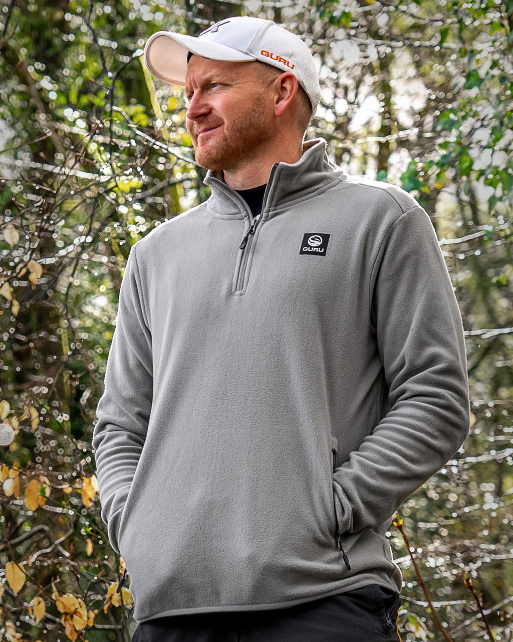 Dieses graue Guru Fleece hat einen ¼-Reißverschluss am Hals und wurde dafür entwickelt, an wirklich kalten, nassen Tagen als zusätzliche Schicht oder bei milderem Wetter als Außenschicht getragen zu werden. Die Jacke besteht aus warmem, gebürstetem 240-GSM-Fleece mit dezentem Guru-Branding und eignet sich für jede Outdoor-Nutzung, nicht nur zum Angeln.
