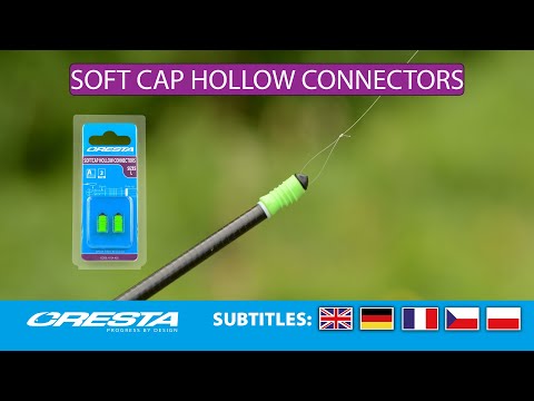 Die Softcap Hollow Connectors bilden eine kompakte und zuverlässige Verbindung zwischen Hauptschnur und Elastik . Das harte Einlegeteil verfügt vorne über eine Einkerbung zur Befestigung der Hauptschnur. Auf der Rückseite befindet sich eine runde Öffnung zur Befestigung des Gummibandes. Die weiche Kappe bietet ausreichend Platz für den Knopf und verfügt über verschiedene Griffrippen. Durch Schieben der Kappe über die Kerbe gegen den Kopf des Einsatzes lässt sich der Stecker leicht schließen. Die Gummikappe reduziert die Geräusche beim Auftreffen auf die Rutenspitze und sitzt dank der konischen Form gut.